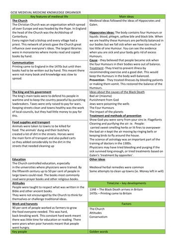 Medicine In Medieval Britain Knowledge Organiser Teaching Resources
